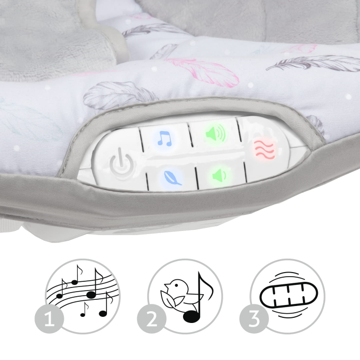 - Modul senzorial ce include: 10 melodii placute cu control al volumului si vibratii care au un efect calmant asupra bebelusului;