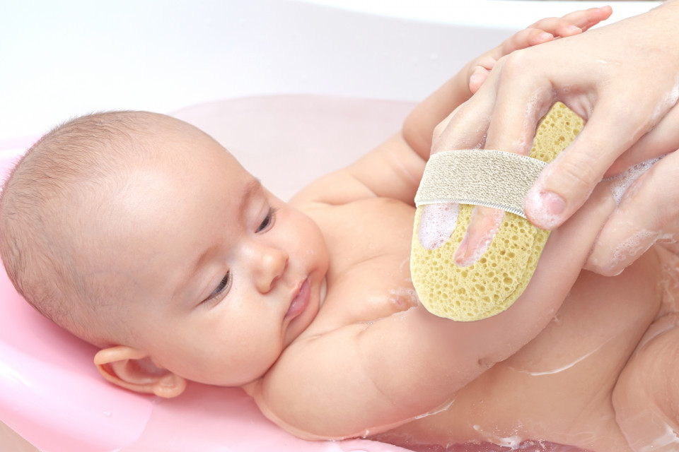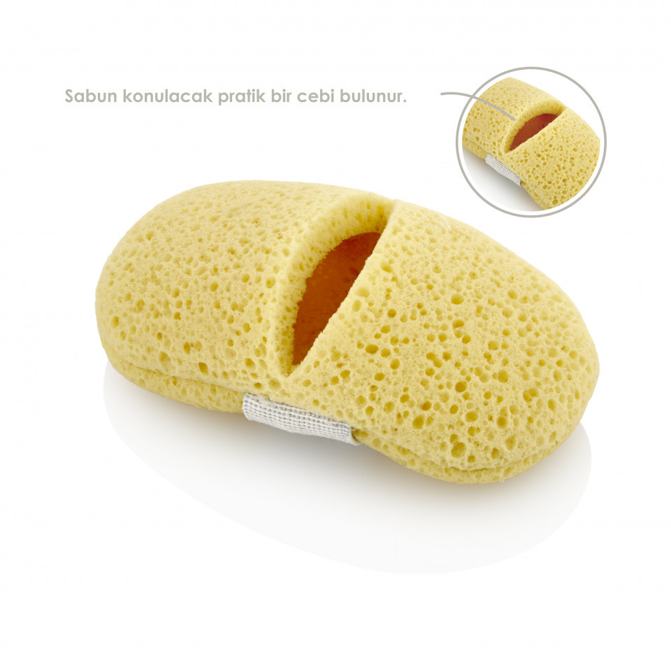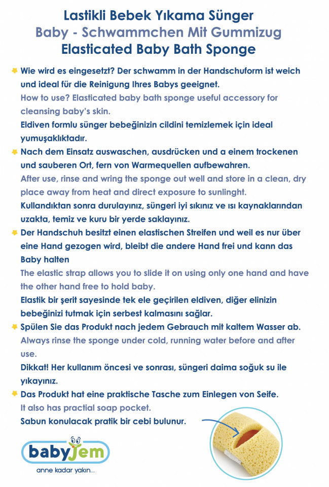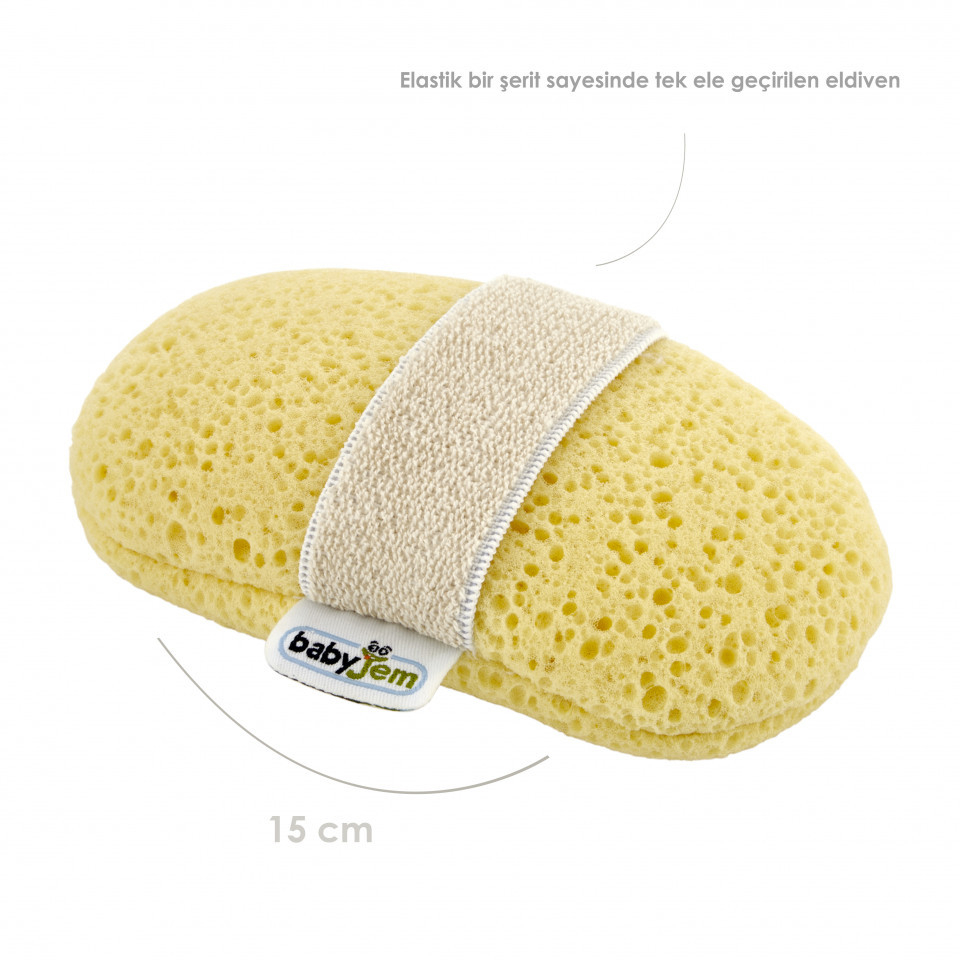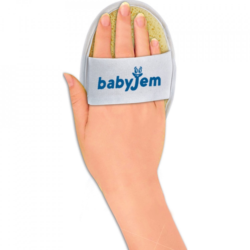 *Se potriveste perfect pe configuratia mainii datorita elasticului situat pe una dintre fetele buretelui, lasand cealalta mana libera pentru sustinerea bebelusului.