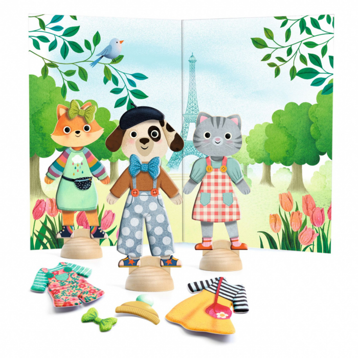 Joc creativ Bine te-am gasit Paris O activitate de colaj: îmbracă cele 3 personaje din lemn cu peste 45 de articole de îmbrăcăminte care pot fi lipite și relipite cum vrei tu. Tot ce mai rămâne de făcut este să inventezi niște povești drăguțe care să se potrivească cu cele 3 personaje.Combină articolele vestimenare după bunul plac fără nicio restricție. Conținut: 3 personaje din lemn cu suport, 45 de articole vestimentare refolosibile (3 foi), 3 fundaluri pariziene, din carton (20 x 20 cm), broșură cu instrucțiuni pas cu pas. Vârsta recomandată: 3 - 6 ani. Fabricat din hârtie și carton certificate FSC®. Conform reglementărilor EN71&ASTM. AVERTISMENT: Contraindicat copiilor sub 3 ani. Conține părți mici. Se recomandă supravegherea copilului de către un adult în timpul jocului. Citiți cu atenție eticheta produsului înainte de a înmâna jucăria copilului. Producător: Djeco, Franța