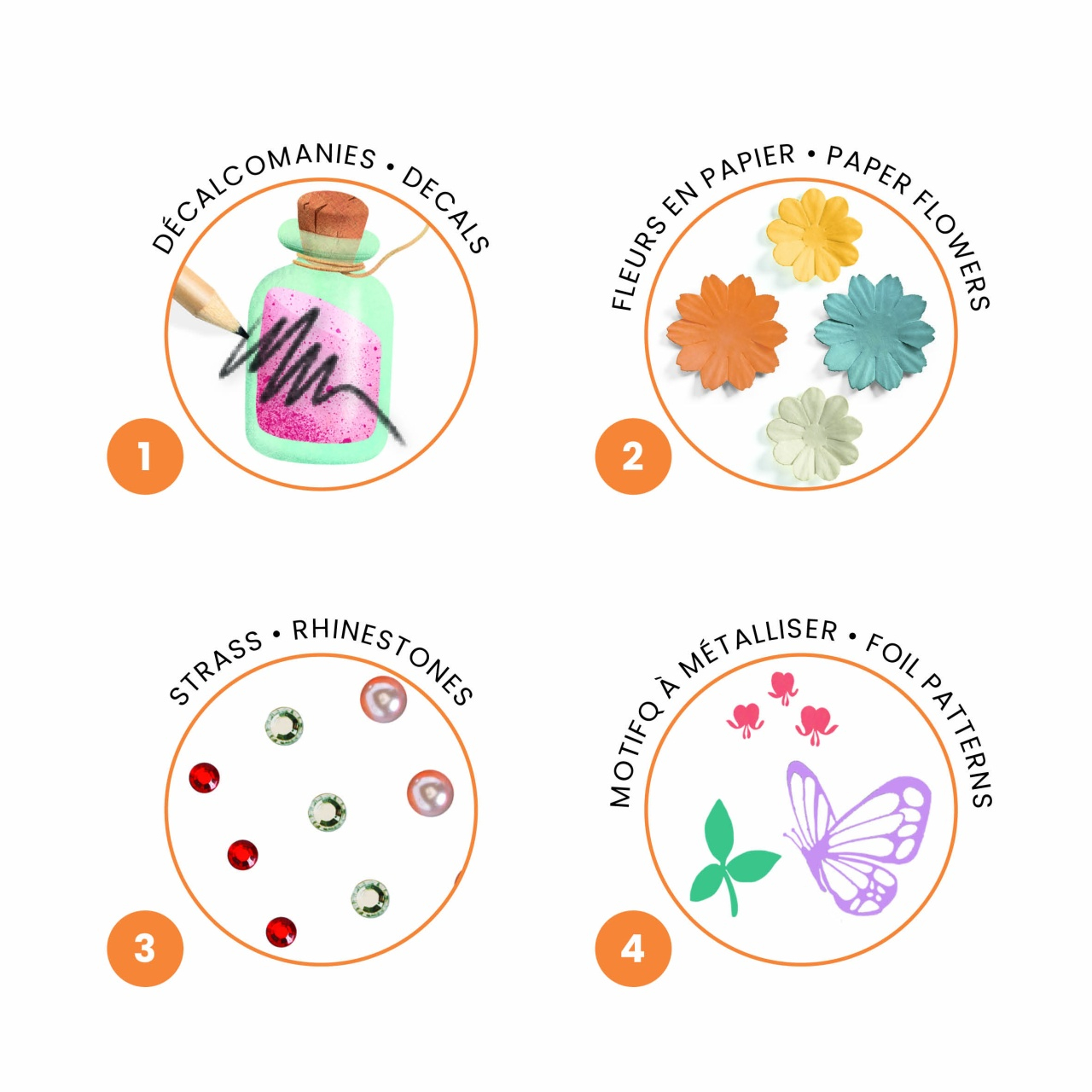 Thumbelina – Set creativ 4 în 1 inspirat de povești fermecate! 🌸 Descoperă magia decorării alături de Thumbelina – un set cu activități diverse și rezultate spectaculoase! Copiii își pot exprima creativitatea prin 4 tehnici diferite, totul într-un singur pachet fermecător. Totul inclus, pregătit pentru creație: 4 planșe ilustrate de decorat, inspirate din povești clasice Autocolante, flori din hârtie, folii decorative și 100 de pietricele autoadezive Activități simple, potrivite pentru copii între 6 și 10 ani Broșură pas cu pas pentru o experiență fără stres ✨ Rezultate impresionante fără efort: Fiecare planșă combină 4 tehnici pentru un efect spectaculos Decorațiuni cu autocolante (decals) – copiii aplică autocolante pe planșe pentru a adăuga detalii colorate și expresive. Flori din hârtie (paper flowers) – se montează flori 3D din hârtie, pentru efect tactil și vizual. Pietricele autoadezive (self-adhesive rhinestones) – mici "bijuterii" care adaugă sclipire și eleganță creațiilor. Decorare cu folii (foil patterns) – aplicarea de folie decorativă pentru un finish metalizat și sofisticat. Toate cele patru se combină pe fiecare planșă, așa încât rezultatul final este super complex și artistic – dar fără să fie greu de realizat. Rezultate garantate Încurajează creativitatea, atenția la detalii și motricitatea fină Pentru copii între 6 și 10 ani! 🌱 Materiale sustenabile – ambalaj din carton certificat FSC® Un cadou recomandat pentru micii artiști care vor acea ocazia să creeze povești cu propriile mâini! AVERTISMENT: Contraindicat copiilor sub 3 ani. Conține piese mici. A se utiliza sub supravegherea unui adult. Producător: Djeco, Franța 🇫🇷