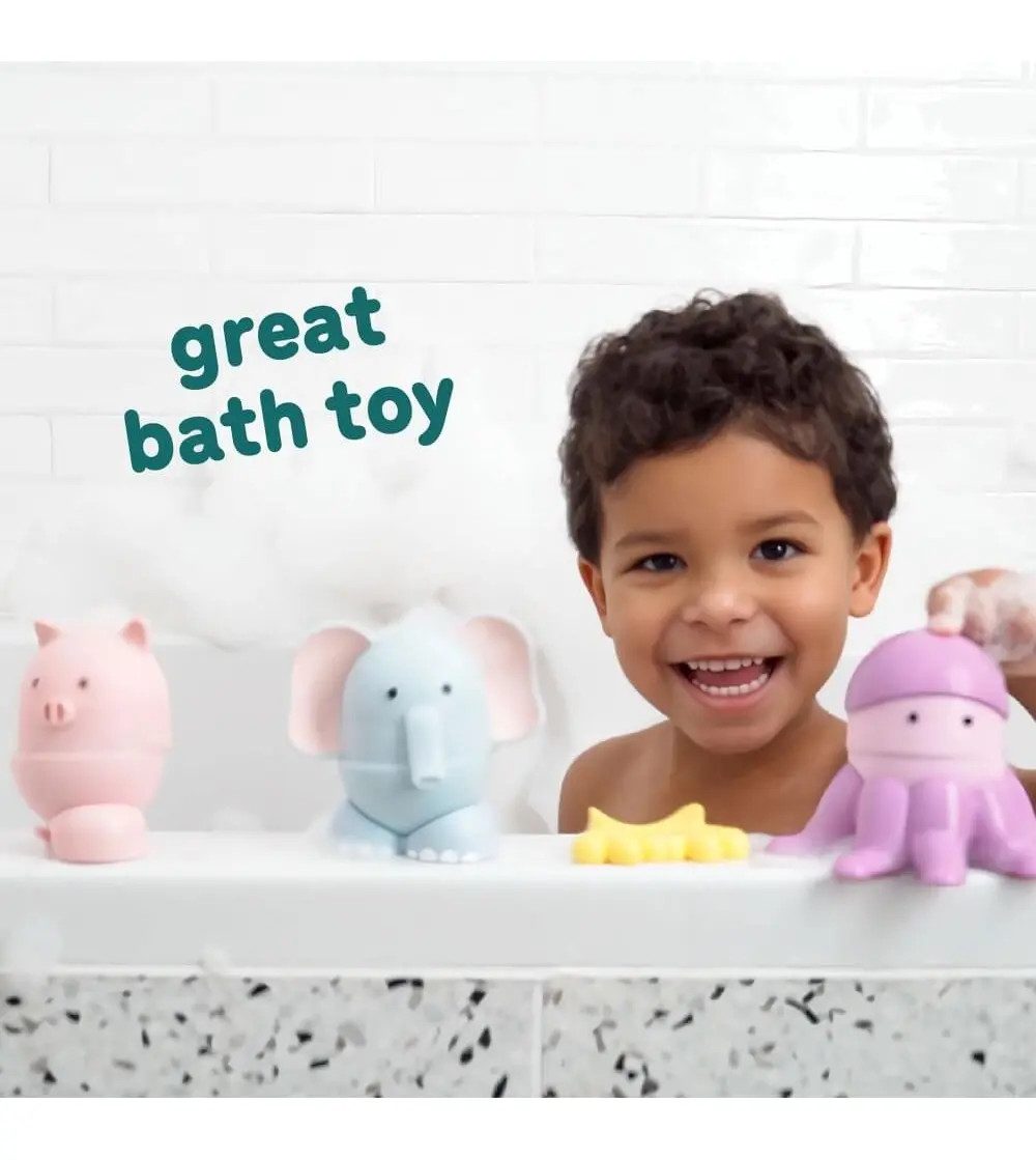 Magimals Pinguin si Caracatita Pinguin, caracatiță sau o combinație din cele 2, după bunul plac al copilului. Animale magnetice care pot fi complet transformate! 2 animăluțe Mix&Match compuse din 3 părți: picioare, corp și cap, sunt pregătite să se alăture micuțului tău chiar și în cadă pentru o aventură distractivă! Confecționate din material moale, sigur, non-toxic, lavabil, rezistent la dentiția bebelușului. Animalele se asamblează ușor datorită magneților puternici și siguri (încapsulați), pot fi strânse și mușcate. Fără orificii mici, nu există riscul acumulării bacteriilor. Fără mirosuri de mucegai! Se curăță ușor cu apă caldă. Magimals stimulează imaginația și susțin dezvoltarea cognitivă a copiilor, oferind o oportunitate excelentă pentru a exersa atingerea, prinderea, mobilitatea degetelor și a încheieturii mâinii, dezvoltarea gândirii logice. Vârstă recomandată: 1-5 ani. AVERTISMENT: Conține magneți! A se utiliza sub directa supraveghere a unui adult. Fabricat în Belgia de Clicstoys.