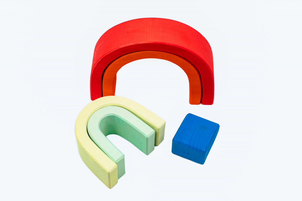 Curcubeu Arcada Mica Joaca liberă dezvoltă armonios imaginaţia, îndemânarea şi creativitatea micuțului tău. Conține 5 piese colorate diferit. Se poate combina cu Curcubeu Arcada Medie pentru a da frâu liber imaginației. Dimensiuni arcadă 15x11,5x4 cm. Vârsta recomandată: +3 ani. Jucărie confecționată manual din lemn, cu vopsele pe bază de apă. Conform normelor EN71. AVERTISMENT! Contraindicat copiilor mai mici de 3 ani, poate conține piese mici. Producător: Marc toys-Eco factory, Moldova