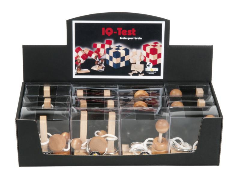 IQ Test Eliberează inelul -1 Modele cu diferite grade de dificultate, care îți pun răbdarea și perspicacitatea la încercare. După ce ai reușit, încearcă să îl aduci în poziția inițială pentru următorul jucător. Vârsta recomandată: + 8 ani. Grad de dificultate: **** Confecționat din lemn, metal, șnur și alte materiale non-toxice conform reglementărilor EN71 & ASTM. AVERTISMENT: Contraindicat copiilor sub 3 ani. Conține șnur, piese mici ce pot fi înghițite. A se utiliza sub directa supraveghere a unei persoane adulte. Producător: Fridolin, Germania.