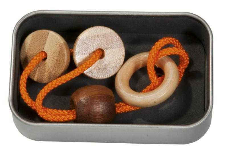 Test IQ puzzle lemn de bambus cu șnur Elibereaza inelul-3 Test IQ puzzle cu șnur portocaliu și lemn de bambus într-o cutie metalică: două emisfere - un inel. Dezvoltă perspicacitatea, inteligența, răbdarea și concentrarea. Dimensiuni cutie: 6 x 2,2 x 9,4 cm (L x A x P). Confecționat din lemn și materiale non-toxice conform reglementărilor EN71 & ASTM. Certificate FSC®. Vârsta recomandată: +8 ani. Grad de dificultate: ***** AVERTISMENT: Contraindicat copiilor sub 3 ani. Conține piese mici ce pot fi înghițite, șnur lung. A se utiliza sub stricta supraveghere a unei persoane adulte. Producător: Fridolin, Germania.