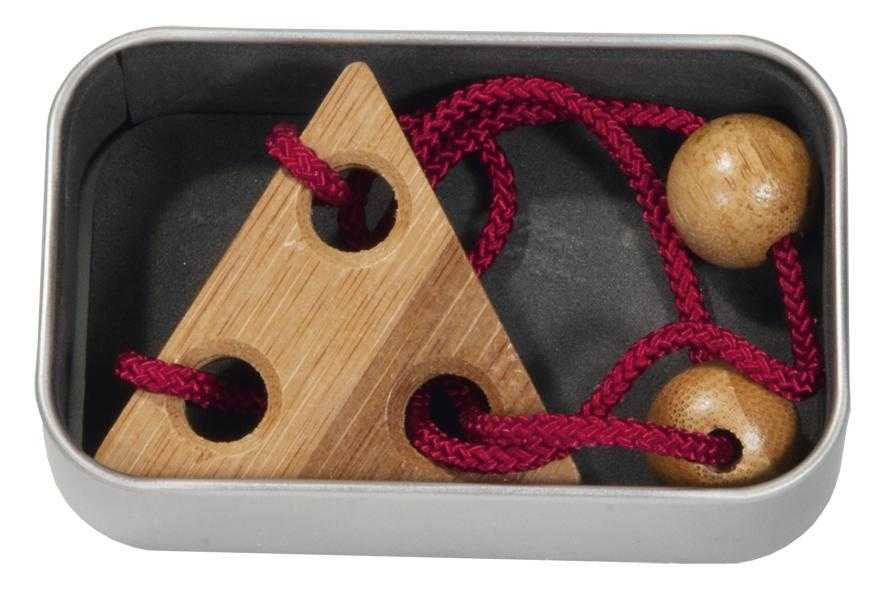 Test IQ puzzle lemn de bambus cu snur rosu Test IQ puzzle cu șnur roșu și lemn de bambus într-o cutie metalică : 2 bile - 1 triunghi. Dezvoltă perspicacitatea, inteligența, răbdarea și concentrarea. Dimensiuni cutie: 6 x 2,2 x 9,4 cm (L x A x P). Confecționat din lemn și materiale non-toxice conform reglementărilor EN71 & ASTM. Vârsta recomandată: +8 ani. Grad de dificultate: **** AVERTISMENT: Contraindicat copiilor sub 3 ani. Conține piese mici ce pot fi înghițite, șnur lung. A se utiliza sub stricta supraveghere a unei persoane adulte. Producător: Fridolin, Germania.