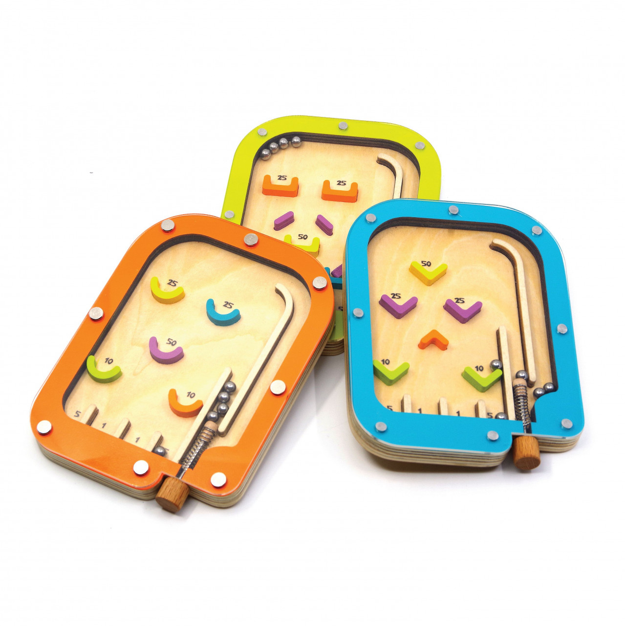 Pinball Frenzy verde Ești pregătit pentru o provocare "Frenzy"? Apasă pe trăgaci, lansează bilele și încearcă să obții cel mai bun scor plasându-le în pozițiile potrivite: acesta este Pinball-ul! Un joc retro clasic Mind-Up care vine să ne amintească de distracția de odinioară a jucăriilor simple, dar provocatoare. Este o nouă abordare, completată cu lemn, a clasicei jucării cu flipper care ajută la îmbunătățirea observației, a stabilității și a preciziei, însoțindu-vă în timpul liber într-un mod provocator. Dimensiune 12 × 9 × 1.5 cm Vârsta recomandată: + 5 ani. Fabricat din lemn. Conform standardelor EN71, ASTM. AVERTISMENT! Contraindicat copiilor sub 3 ani. A se folosi sub directa supraveghere a unei persoane adulte. Producător: Svoora, Grecia