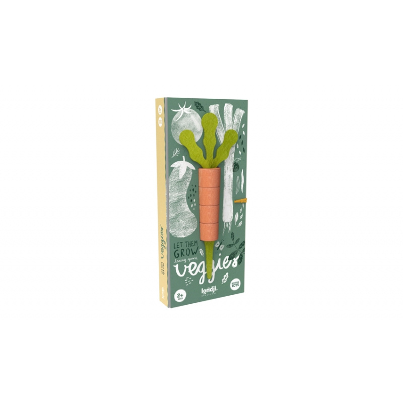 Joc din lemn și fetru Gradina de legume Cultivă propria grădină de legume! Înfige piesele de lemn pe pâslă și creează legumele. Jocul constă în crearea a patru legume - o roșie, o vânătă, un morcov și un praz - în ordinea de la cel mai ușor la cel mai dificil. Pentru a începe, mai întâi va trebui să alegeți piesele legumei pe care doriți să o creșteți, urmărind ordinea și culoarea corectă. După ce ați ales piesele, arătați-vă îndemânarea, înșirându-le pe tulpinile de pâslă. După ce ați realizat toate legumele, copiii se pot juca cu ele, vânzându-le în propriul magazin de legume sau pregătind mâncăruri delicioase. Cu acest joc copiii învață despre legume și își dezvoltă motricitatea fină și alte abilități de joc simbolic în timp ce se distrează. Setul este livrat într-o cutie frumoasă din carton reciclat pentru a-l avea mereu ordonat și pregătit. Ca joc de înfiletat, stimulează motricitatea fină și coordonarea spațială. Ca joc simbolic, stimulează imaginația și crearea de scenarii diferite. Un joc polivalent - de la joc de îndemânare la jocul simbolic. Învățați copiii despre alimentația sănătoasă de la o vârstă fragedă! Conține 13 piese din lemn de fag și 6 piese din pâslă (fetru) 100% lână. Vârsta recomandată: +5 ani. Confecționat din lemn de fag, de proveniență locală, finisat cu coloranți pe bază de apă și pâslă 100% lână, ambalaj din carton reciclat. Produs Eco-Friendly. Conform reglementărilor EN71&ASTM. AVERTISMENT: Contraindicat copiilor sub 3 ani. Se recomandă supravegherea copilului de către un adult în timpul jocului. Produs de Londj în Spania.