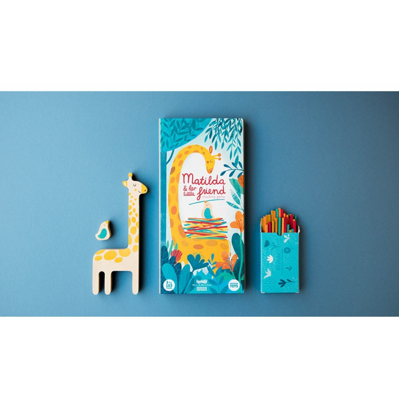 Girafa Matilda - joc de echilibru Girafa Matilda ajută pasărea să își construiască cuibul. Un joc de îndemânare pentru copii de la 5 la 105 ani în care trebuie mai întâi să așezați toate bețele în echilibru pe Matilda. Odată depășită această provocare veți avea nevoie de o mână ușoară și multă îndemânare pentru a poziționa pasărea în cuib fără ca edificiul să se prăbușească! Ambalat în cutie robustă din carton. Conține piesa bază girafă (22 x 10 cm), o piesă pasăre și 40 de bețe, toate din lemn. Vârsta recomandată: +5 ani. Confecționat din lemn, ambalaj din carton reciclat conform reglementărilor EN71&ASTM. AVERTISMENT: Contraindicat copiilor sub 3 ani. Se recomandă supravegherea copilului de către un adult în timpul jocului. Produs de Londj în Spania.