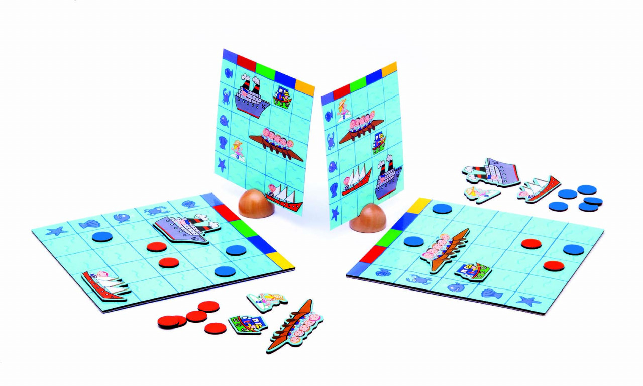Joc de strategie Naviplouf Clasicul joc jucat în pauzele de la școală pe caietul de matematică devine o bătălie navală. Jocul se simplifică pentru cei mici prin folosirea de coduri și culori, planșe și piese de joc magnetice și desene care ies din lumea abstractă ( ”balenă pe albastru” în loc de B3). Jocul conţine: 2 table magnetice de joc, 2 seturi de câte 5 vapoare, 22 pioni albaştri, 18 pioni roşii, 16 cartonaşe cu modele de aşezare a navelor şi 2 suporturi din lemn pentru cartonaşele-model. Vârsta recomandată: 5 - 10 ani. Confecționat din materiale și vopsele non toxice conform reglementărilor EN71&ASTM. AVERTISMENT: Contraindicat copiilor sub 3 ani. Se recomandă supravegherea copilului de către un adult în timpul jocului. Citiți cu atenție eticheta produsului înainte de a înmâna jucăria copilului. Producător: Djeco, Franța. Vaporase (Naviplouf)