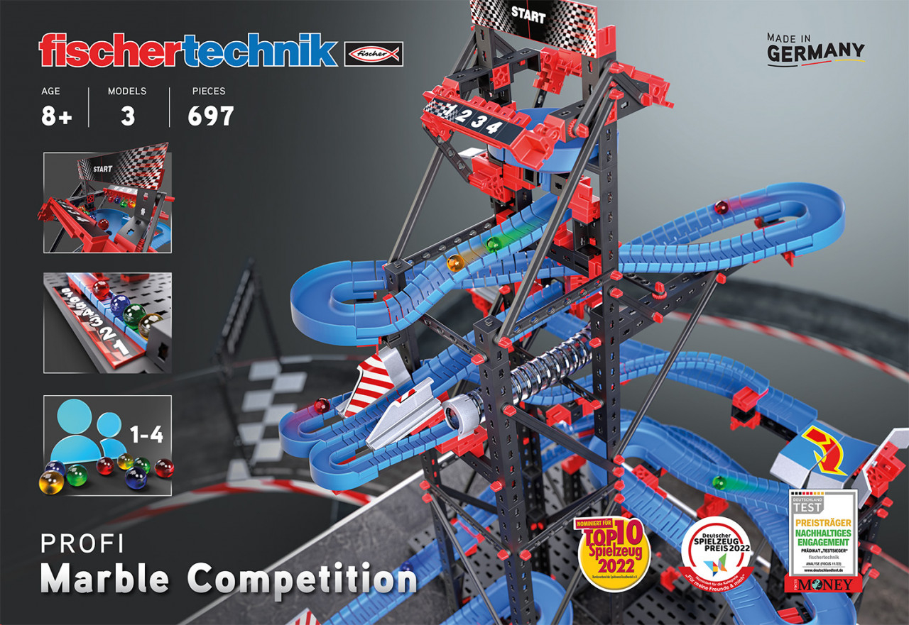 Kit STEM Cursa cu bile metalice Conceput atât pentru un singur jucător, cât și pentru grupuri de prieteni și chiar echipe, Cursa cu bile metalice va permite să construiți modele interesante și distractive de piste de curse pe care bilele metalice se pot lua la întrecere. Setul de construcție include trei modele complet diferite, pline de acțiune. Odată ce pista este construită, distracția începe cu adevărat! Atracțiile setului includ șinele late și flexibile, de mare viteză, precum și curbe strânse pentru manevre de depășire îndrăznețe. Bilele colorate dau posibilitatea fiecărui jucător de a alege o culoare și apoi a le urmări pe traseul cursei rapide cu obstacole. Dar ai grijă să nu te declari câștigător prea repede - blocajele reglabile pot încetini sau opri bilele, menținând cursa interesantă până la sfârșit. Toate cele trei modele au curse distincte, cu dispozitive de lansare diferite. Instrucțiuni de asamblare pentru a construi 3 modele de circuite, complexe și originale. Conține 697 de piese. Vârsta recomandată: +8 ani. Confecționat din plastic. Conform reglementarilor EN71&ASTM. AVERTISMENT: Contraindicat copiilor sub 3 ani, conține piese mici. Se recomandă supravegherea copilului de către un adult în timpul jocului. Citiți instrucțiunile înainte de utilizare, urmați-le și păstrați-le pentru referință. Produs in Germania de Fischertechnik.