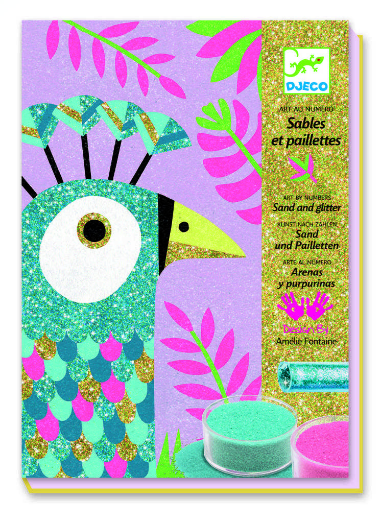 Atelier creativ cu nisip si sclipici, Pasari Pasari stralucitoare cu culori asortate Setul contine planse predesenate cu 4 imagini de decorat, numerotate pe fiecare segment, un instrument de lucru, 9 recipiente cu nisip, 2 tuburi cu sclipici, brosura color cu instructiuni pas cu pas. Varsta recomandata: 6 -11 ani. Confectionat din materiale non toxice, cu culori non-toxice. Avertisment: Contraindicat copiilor sub 3 ani. A se utiliza sub stricta supraveghere a unei persoane adulte. Producator: Djeco, Franta https://www.youtube.com/watch?v=eRebedQKQVg&list=PLf4YUEpnRANEUU0FXwwMLSn51eHXj_Z20&index=22