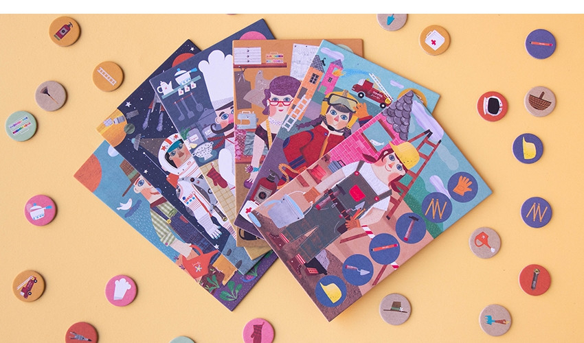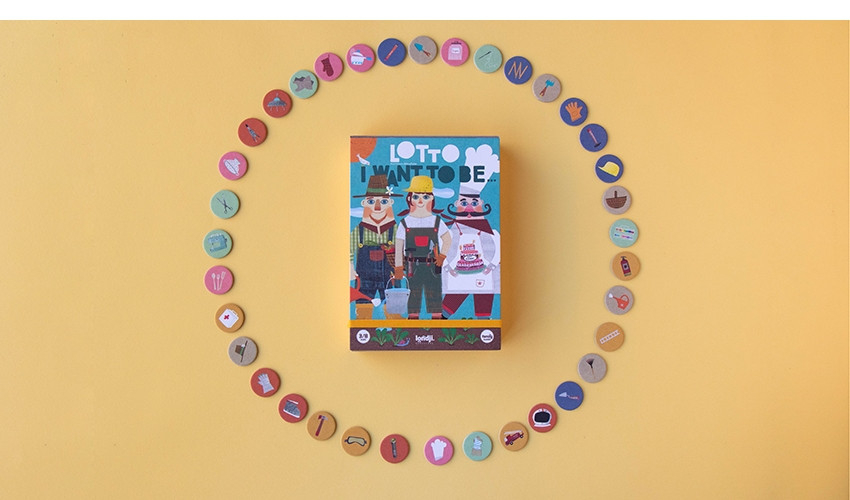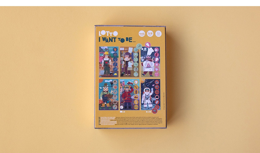 Joc de asociere Loto meserii Joc Loto pentru copii și adulți; câștigătorul este jucătorul care adună primul toate imaginile ocupației aleasă de el. Ilustrație Africa Fanlo Ambalat în cutie robustă din carton. Conține 6 table de joc ocupație (14 x 22 cm) + 36 de piese rotunde cu imagini de ocupație.Dimensiune cutie 27,5x15x4,5cm. Vârsta recomandată: + 3 ani. Confecționat din hârtie FSC și carton reciclat conform reglementărilor EN71&ASTM. AVERTISMENT: Contraindicat copiilor sub 3 ani. Se recomandă supravegherea copilului de către un adult în timpul jocului. Producător: Londji, Spania.