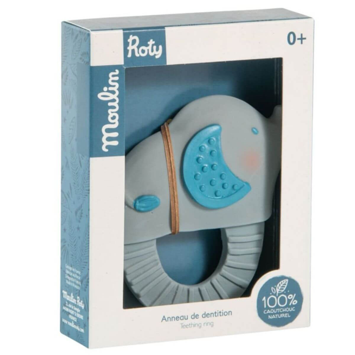 Jucarie gingivala Elefant Inel de dentitie cu elefant din colectia Sous mon Baobab, din cauciuc 100% natural - ideal pentru ameliorarea gingiilor dureroase ale bebelusului! Guma din cauciuc este un material sigur și sănătos pentru ca bebelușul să se joace și să mestece toată ziua. Acest material este crescut fără niciun tratament chimic, apoi recoltat și prelucrat manual într-un mod responsabil. Inelul este echipat cu suprafețe striate pentru formarea dinților și proeminențe rotunjite pentru calmarea gingiilor. Ambalat în cutie deschisă însoțită de un card cu informatiile esentiale explicate cu cea mai mare simplitate! Îngrijire: Spălați manual cu apă și săpun. Nu sterilizați. Dimensiune 7,5 cm diametru. Vârsta recomandată: + 0 luni. Confecţionat din cauciuc natural (Hevea). Conform reglementarilor EN71&ASTM. A se folosi sub directa supraveghere a unei persoane adulte. Înlăturaţi ambalajul și eticheta înainte de a oferi jucăria copilului. Producător: Moulin Roty