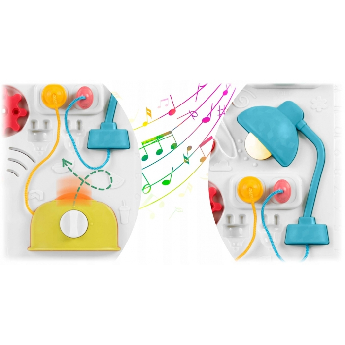 Masuta este ideala pentru invatarea numerelor, culorilor si formelor. Panoul detasabil poate fi folosit ca tabla educationala, iar dupa adaugarea picioarelor, se transforma intr-o masa educationala.