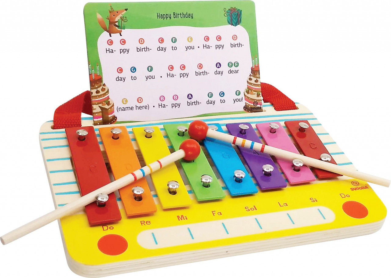 Metalofon in forma de radio Ești gata să-ți duci inspirațiile muzicale la un nivel superior? Metalofon radio cu 8 note, fantezist și portabil! Detașați bețele - antene și ajungeți la frecvența potrivită. Clapele sunt acordate și codificate pe culori și sunt incluse partituri pentru 4 melodii, pentru a te învăța notele și pentru a te ajuta să descoperi frumusețea muzicii prin creșterea creativității și a gândirii critice. Suprafața din lemn oferă stabilitate și o calitate mai bună a sunetului, în timp ce cureaua atașată te ajută să transporți metalofonul, să cânți în concerte și să-ți impresionezi publicul oriunde! Joaca și învățarea tocmai s-au transformat într-o activitate uimitoare! Sunt inlucse un suport pentru partituri și o husă de depozitare. Vârsta recomandată: + 3 ani. Fabricat din lemn și metal. Conform standardelor EN71, ASTM. AVERTISMENT! Contraindicat copiilor sub 3 ani. A se folosi sub directa supraveghere a unei persoane adulte. Producător: Svoora, Grecia