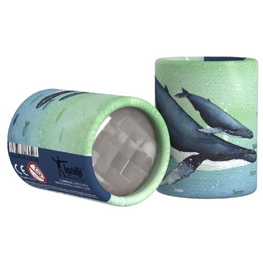 Mini-caleidoscop Balene Jucărie optică, descompune şi multiplică imaginea în mii de bucăţele. Descoperă lumea din jurul tău descompusă și recompusă în bucățele mici! O lentilă tip ochi de muscă cu ilustrație balene. Un mini caleidoscop ideal pentru a explora natura. Vârsta recomandată: 5-103 ani. Confecționat din carton reciclat, lentila din plastic Conform reglementărilor EN71&ASTM. AVERTISMENT: Contraindicat copiilor sub 3 ani. A se utiliza sub directa supraveghere a unui adult. Producător: Londji, Spania. Proiectat și fabricat în Europa.