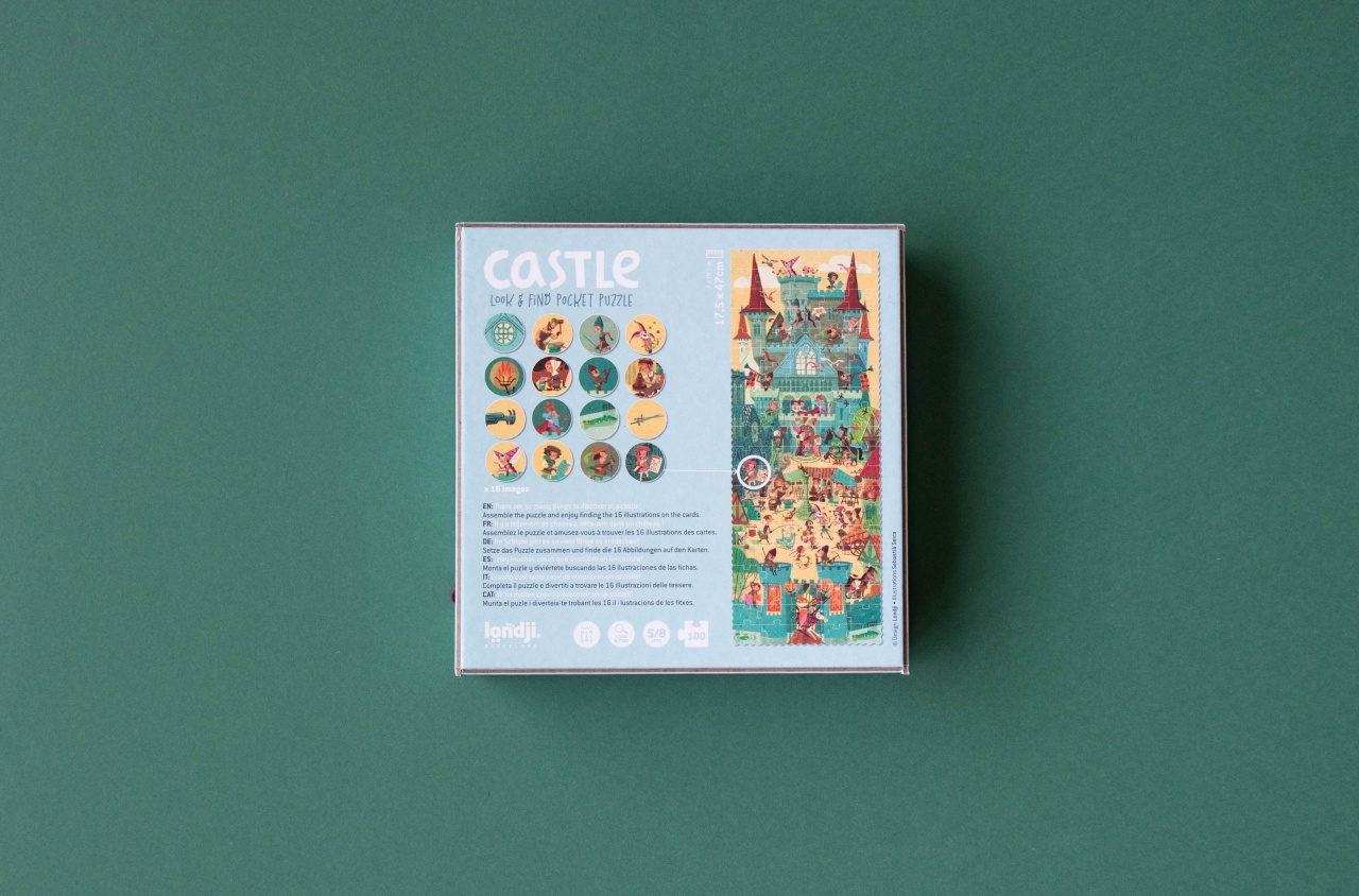 Puzzle de buzunar Castel – Descopera Evul Mediu! Călătorește în timp și explorează viața medievală! 🏰 Asamblează puzzle-ul și se vor releva scene captivante dintr-o cetate medievală. Odată ce ai terminat puzzle-ul, începe aventura: caută personajele și secretele ascunse în castel! Găsește cavalerul, regele, bufonul, muzicantul și călugărul, alături de multe alte surprize! Descoperă viața din cetate în perioada medievală, completând prin exeplificare cunoștintele teoretice din școala! 🏰🔎 🔹 Conține: Puzzle de 100 de piese + 16 carduri de observație 🔹 Dimensiune puzzle 17.5 x 47 cm 🔹 Vârstă recomandată: 5-8 ani 🔹 Dimensiune compactă – ideal pentru călătorii ✈️ 🔹 Materiale: Hârtie FSC și carton reciclat 🔹 Ilustrație: Sebastià Serra 🔹 Fabricat în Barcelona Avertisment! Nu este potrivit pentru copiii sub 3 ani. Conține piese mici. Produs de Londji