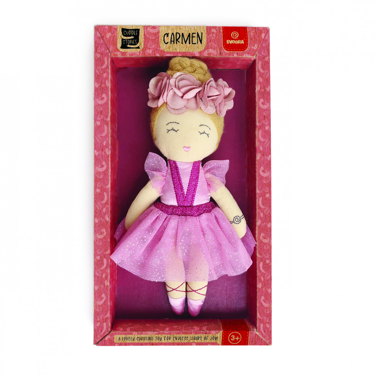 Papusa balerina Carmen Dansează și joacă-te alături de Carmen, păpușa balerină de cârpă cu un design unic! Fabricată din materiale sigure, poate oferi ore nesfârșite de distracție micilor domnișoare! Dimensiune 20 cm. Vârsta recomandată: + 3 ani. Conform standardelor EN71, ASTM, AVERTISMENT! Contraindicat copiilor sub 3 ani. A se folosi sub directa supraveghere a unei persoane adulte. Producător: Svoora, Grecia