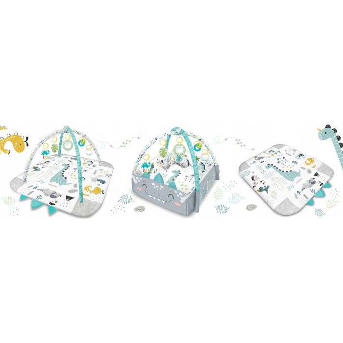 Aceasta salteluta educativa este extrem de colorata, moale si realizata foarte atent cu privire la estetica ei si la detalii. O salteluta colorata din tesatura va asigura o distractie sigura pentru cele mai tinere comori. Colorat cu mascote fericite, va sustine dezvoltarea copilului. Mobilitatea de a scoate mascotele va asigura o varietate de distractie inca din primele zile ale copilului. Deasupra saltelutei exista o banda/arcada cu jucarii colorate atasate pe ea. Cand copilul sta intins pe spate, se poate juca cu jucariile atasate la banda.