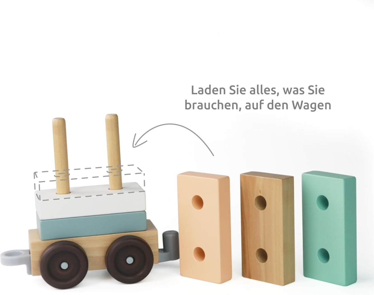 Trenulet cu forme din lemn Trenuleț din lemn pentru copii 2 în 1 cu 18 piese. Cei mici pot deveni nu numai mecanici de tren, ci și constructori. Trenul este format dintr-o locomotivă și două vagoane și poate fi complet dezasamblat în părți individuale. Jucăria de tras (șnur încorporat) poate fi transformată într-o jucărie Montessori pentru sortare și stivuire în cel mai scurt timp. Copiii pot crea diferite combinații colorate și de diferite forme ale vagoanelor, își pot construi în afara vagoanelor sau pur și simplu se pot întrece prin casă cu trenul. Creativitatea nu are limite, în același timp, copilul învață să recunoască culorile și formele, își îmbunătățește abilitățile motorii (coordonarea ochi-mână) și își dezvoltă gândirea spațială și logică. Cadou ideal pentru zile de naștere, Crăciun, Paște sau Ziua Copilului. Conținut: 18 piese din lemn. Prinderea între vagoane se face cu piese de plastic. Dimensiune trenuleț 37 x 12 x 7 cm. Vârsta recomandată: +2 ani Confecționat din lemn cu vopsele ecologice pe bază de apă, plastic. Conform normelor EN71&ASTM cu certificare CE. AVERTISMENT: Contraindicat copiilor sub 2 ani! Se recomandă supravegherea copilului de către un adult în timpul jocului. Produs în China pentru UMU Toys, Cehia.