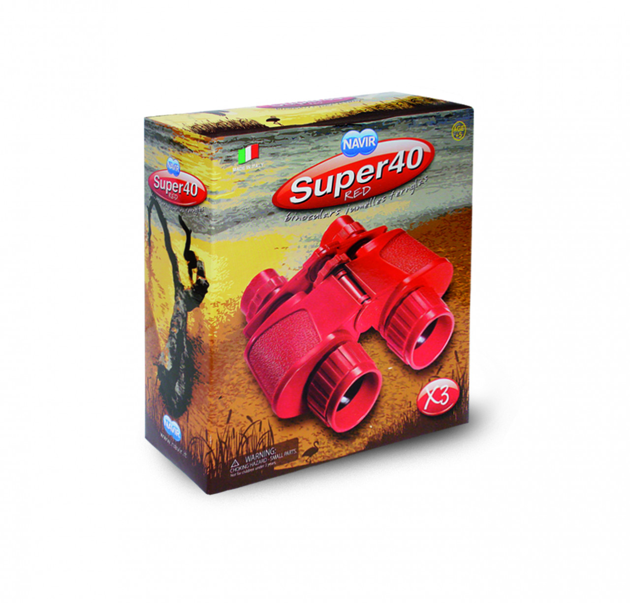 Binoclu rosu cu carcasa Micul tău explorator va putea studia în amănunt minunățiile naturii cu acest binoclu care marește de 3 ori. Binoclu fabricat din plastic ABS (rezistent la impact, la temperaturi ridicate și la contactul cu substanțe chimice). Livrat cu carcasă, curea pentru gât și capace pentru obiective cu sistem de blocare pentru a preveni pierderea acestora. Distanța interpupilară variabilă (de la 49 mm la 78 mm) permite utilizarea corectă chiar și de către copiii mici. 4 lentile optice. Vârsta recomandată: + 4 ani. Confecționat din plastic. AVERTISMENT: Contraindicat copiilor sub 3 ani. A se utiliza sub directa supraveghere a unei persoane adulte. Producător: Navir, Italia.