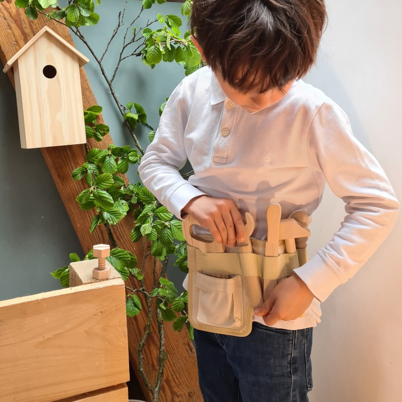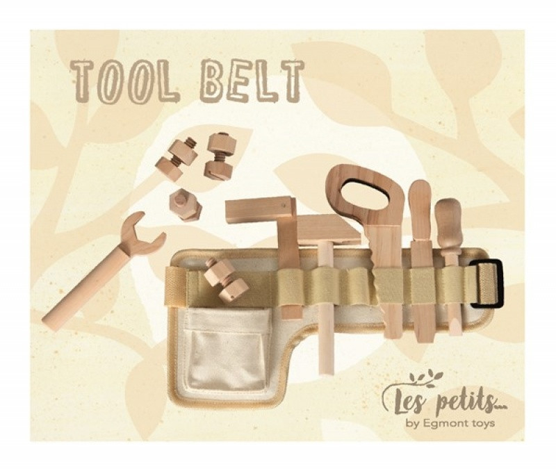 Centura cu unelte Orice meșter iscusit are nevoie de unelte potrivite. Tot ce are nevoie micul tâmplar este inclus inclus: ciocan, ferăstrău, șurubelniță, pila, cheie, șubler, șuruburi, piulițe. Curea ajustabilă și foarte robustă. Vârsta recomandată: +3 ani. Set confecționat din lemn și textil, conform normelor EN71&ASTM. AVERTISMENT! Contraindicat copiilor mai mici de 3 ani, conține piese mici. Producător: Egmont Toys, Belgia