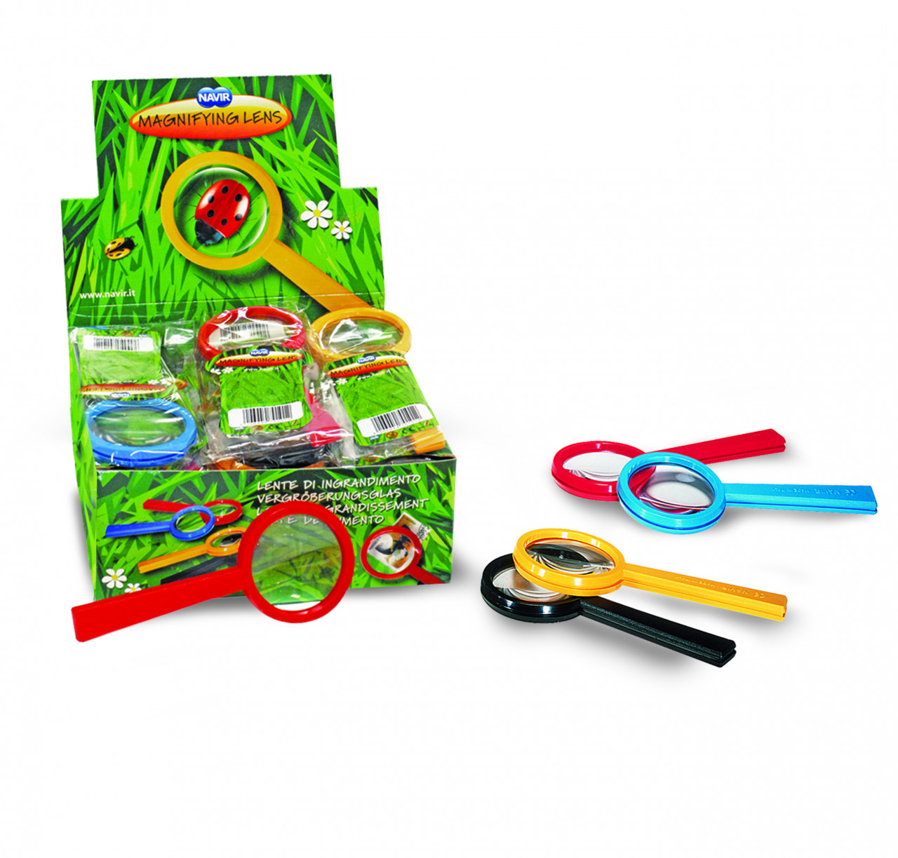 Lupa Lupă de mare putere (mărește de 4 ori). Dimensiune lupă: 14 x 5.5 x 1 cm. Dimensiune lentila 4.5 cm. Vârsta recomandată: + 4 ani. Fabricat din plastic ABS (rezistent la impact, la temperaturi ridicate și la contactul cu substanțe chimice) și plexiglas. AVERTISMENT: Contraindicat copiilor sub 3 ani. A se utiliza sub supravegherea unei persoane adulte. Produs de Navir - jucarii optice și științifice, Italia.