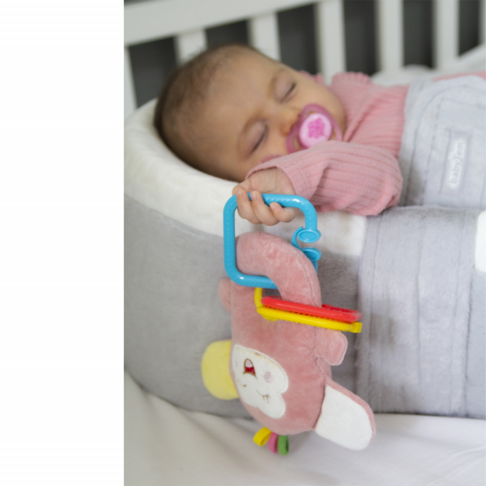 In timp ce inelele distractive de pe corpul maimutei atrag atentia bebelusului cu culorile lor, acestea sustin dezvoltarea abilitatilor motorii fine .