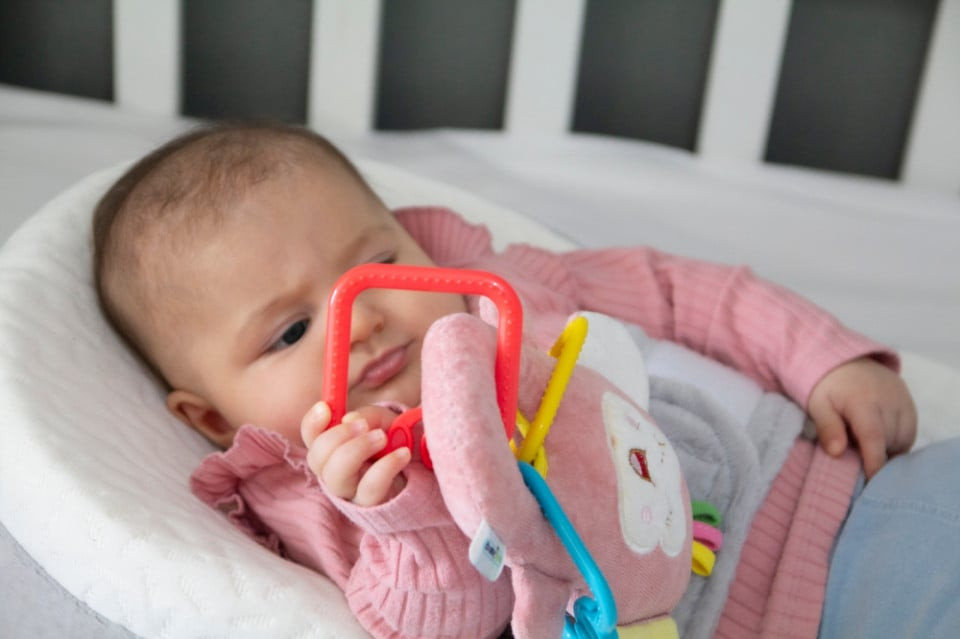 Inelele colorate pot fi atasate la carucior sau scoica auto.
