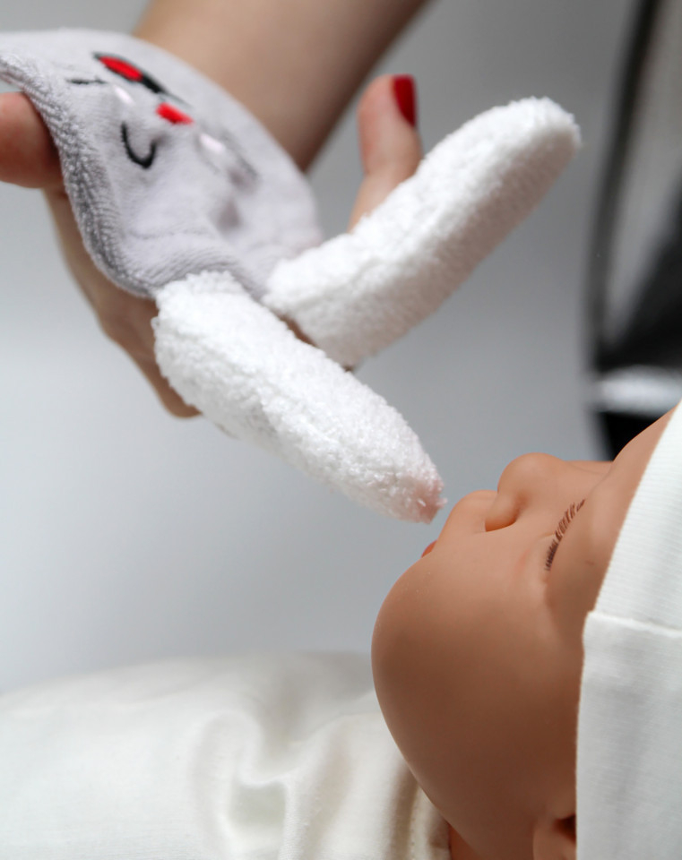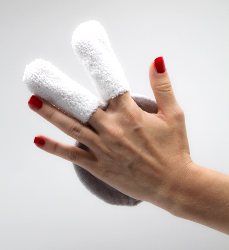 -Cu degetele moi din microfibra, puteti curata si masa cu usurinta gingiile sensibile ale bebelusului.