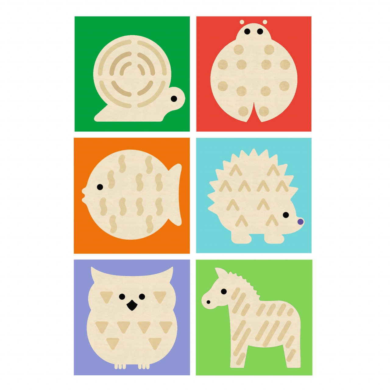 Cuburi lemn gravate TouchBasic Patru cuburi din lemn ilustrate și gravate cu modele diferite, învațăndu-i pe copii să facă legătura între simțul vizual și cel tactil. Copiii asamblează culori și modele pentru a construi 6 animale. Cele șase animale au culori distincte pentru a ajuta copiii să reconstituie cu ușurință imaginile. Fiecare animal are câte un motiv specific gravat. Cuburi groase, ușor de mânuit. Conținut: 4 cuburi din lemn gravate si ilustrate. Dimensiune cub 4.5 cm. Vârsta recomandata: + 2 ani. Fabricate din lemn certificat FSC®. AVERTISMENT: Contraindicat copiilor sub 2 ani. A se utiliza sub directa supraveghere a unui adult. Producător: Djeco, Franța.