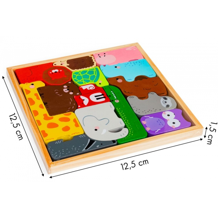 Datorita faptului ca figurinele sunt asezate pe o tava de lemn, copilul tau poate folosi jucaria ca un puzzle. Este o provocare pentru copilul dvs. sa memoreze aranjarea figurinelor si sa le puna cap la cap singur. Aceasta sarcina va dezvolta abilitatile manuale si gandirea logica.