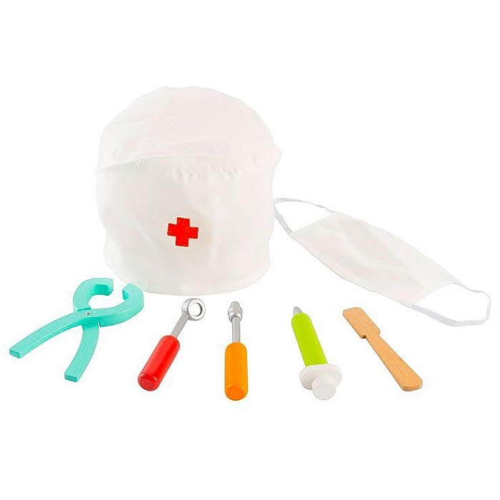 Setul il va aduce pe copilul tau in lumea adultilor, cel mic va putea deveni stomatolog si cu siguranta ii va placea. Pe langa distractia buna, copilul tau va putea invata regulile de ingrijire orala, iar urmatoarea ta vizita la cabinetul stomatolog nu va mai provoca nemultumiri si griji. Setul include 5 accesorii specifice, boneta si o masca pentru a se proteja de microbi.