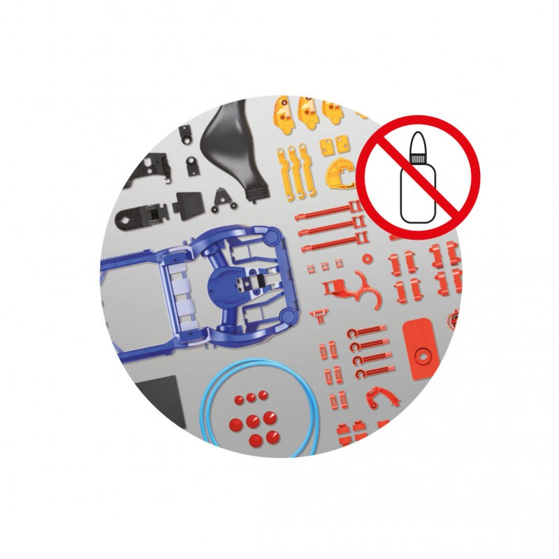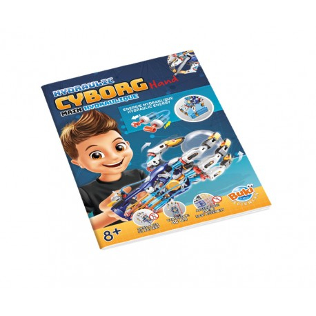 Construieste o mana cyborg articulata prin asamblarea pieselor. Adaugati apa in sistem si controlati cu varful degetelor. Mana poate fi reglata pentru a transporta obiecte precum mingi sau sticle. Poate fi adaptat atat pentru stangaci cat si pentru dreptaci. Folosind aceleasi principii ale fizicii (forta hidraulica), descopera si setul similar: BRATUL HIDRAULIC - acum pe bebeluc.ro. Setul include: 1 surub cu cap pentru cheie imbus suruburi 1 capac mic 1 capac mare 1 arc mic 1 arc mare 1 acoperire 1 tub ulei 1 ghid ilustrat in limba engleza Avertisment: Numai pentru copiii cu varsta de 8 ani si peste. AVERTIZARE ! Nu este potrivit pentru copiii sub 36 de luni din cauza pieselor mici care pot fi ingerate. Pericol de sufocare. A se utiliza sub supravegherea directa a unui adult. Prezenta punctelor si marginilor ascutite functionale. Necesita surubelnita si cleste. Se recomanda supravegherea unui adult. Obiectele de ridicat nu sunt incluse. Mana nu mareste capacitatea fizica - greutate maxima testata: pana la 600 g.