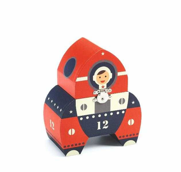Cutie muzicala Racheta Polo 12 este o cutie muzicală în formă de rachetă frumos decorată. Rotiți cheița, deschideți cutia și... surprizăi! O figurină astronaut se rotește, reflectat într-o oglindă. Melodia „Take Me Out to the Ball Game” de Albert Von Tilzer durează aproximativ 2 minute și 30 de secunde. Conținut: o cutie muzicală din lemn acoperită cu hârtie, căptușită cu catifea. Dimensiune cutie muzicală: 14,5x17,5x7,8 cm. Latime pachet: 15 cm Inaltime pachet: 9 cm Adancime pachet: 18,5 cm Vârsta recomandată +3 ani. Confecționată din carton și metal și textil. Certificare FSC®. AVERTISMENT: Acest articol nu este jucărie. A nu se lăsa la îndemâna copiilor sub 3 ani. Design: Gervaise Producător: Djeco, Franța.
