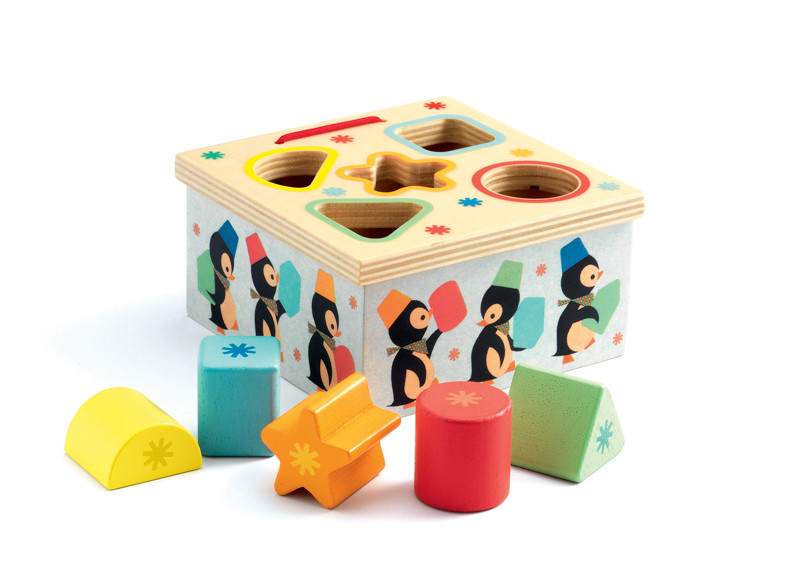 Cutie sortatoare Geopingy O cutie pătrată din lemn decorată cu pinguini. Copiii glisează formele în găurile potrivite, ghidați de forma și culoarea pieselor. Odată ce toate formele sunt înăuntru, ei pot deschide capacul și pot recupera piesele. Conţine 5 piese colorate de diferite forme, frumos colorate, de recunoscut şi de potrivit. Dimensiune produs: 12 x 6.5 x 12 cm. Vârsta recomandată: +18 luni. Confecţionată din lemn certificat FSC®. Conform reglementărilor EN71 & ASTM. AVERTISMENT: Contraindicat copiilor mai mici de 18 luni. A se utiliza sub directa supraveghere a unui adult. Producător: Djeco, Franța
