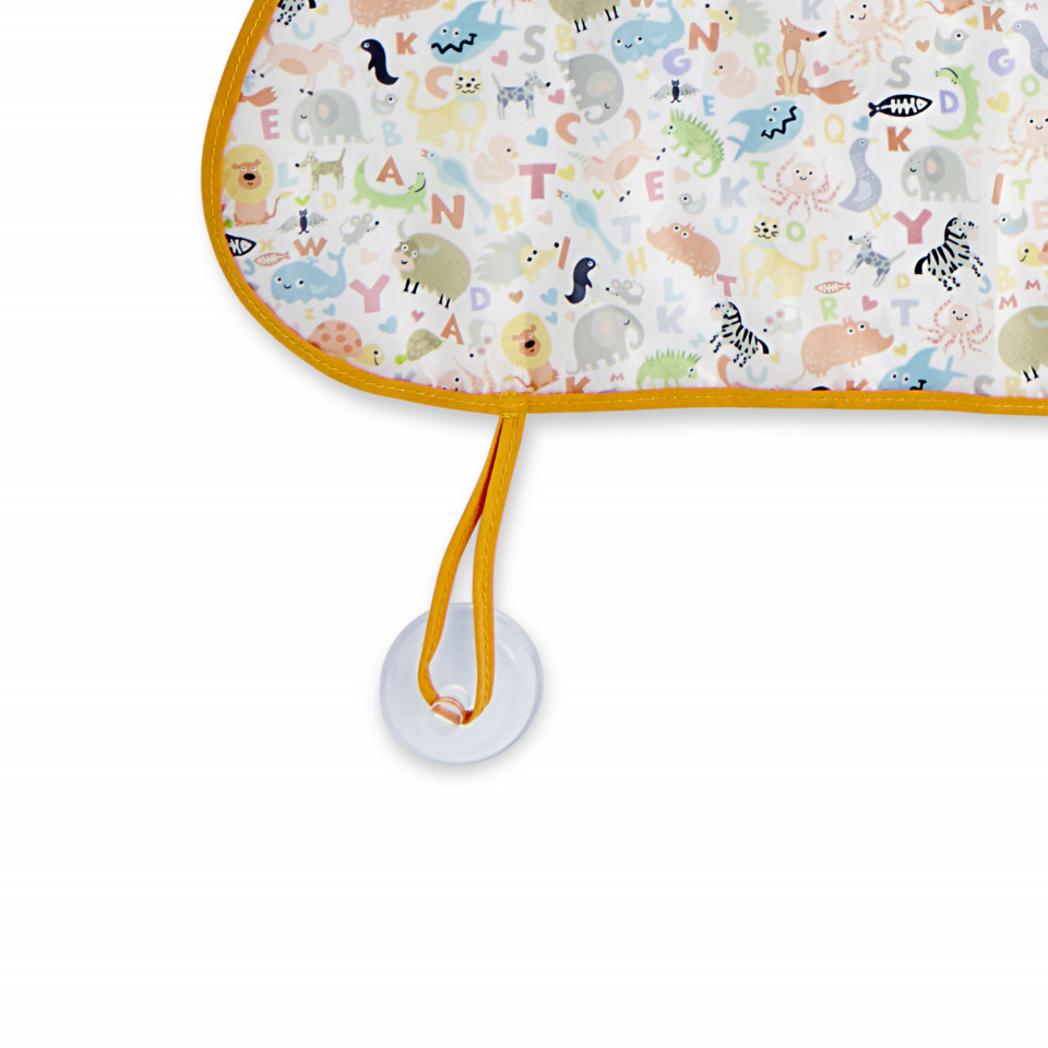 Cu ajutorul ventuzelor, baveta se poate prinde cu usurinta de scaunul copilului.
