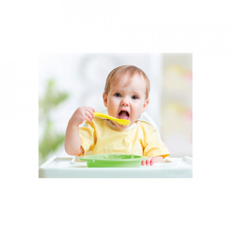 Materialul moale va ajuta copilul sa deprinda obiceiul de a se hrani singur  .