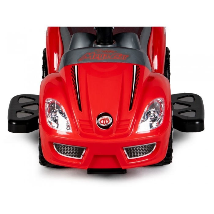 Masinuta de impins este realizata dintr-un material rezistent la orice impact. Masina poate fi modificata la alegere, astfel incat sa poata fi ajustata la varsta copilului. Barierele de protectie, suportul pentru picioare, spatarul si manerul pot fi detasate de masinuta atunci cand copilul este pregatit pentru asta. Rotile pivotante din fata sunt controlate de catre copil cu ajutorul volanului, care are incorporat si sunet de claxon. Sub scaun exista o ascunzatoare mare.