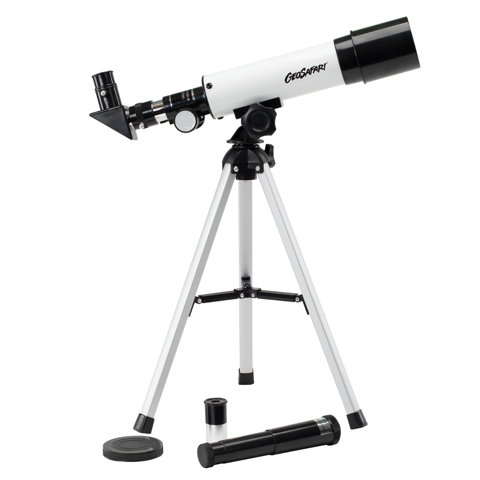 Orice copil pasionat de stiinta si explorare a secretelor naturii va fi atras de acest telescop. Micul explorator va putea analiza indeaproape fauna vegetatia si cerul. Lentilele de 50 mm din sticla ofera imagini extrem de clare oferind posibilitatea de marire de la 18X pana la 80X. Realizat din materiale durabile si usoare cu un design special gandit pentru a facilita utilizarea de catre cei mici acest telescop poate fi folosit in activitati de observare atata acasa cat si in excursii.Include un trepied care asigura o buna stabilitate pe durata utilizarii si doua oculare interschimbabile. Varsta minima recomandata: +8 ani