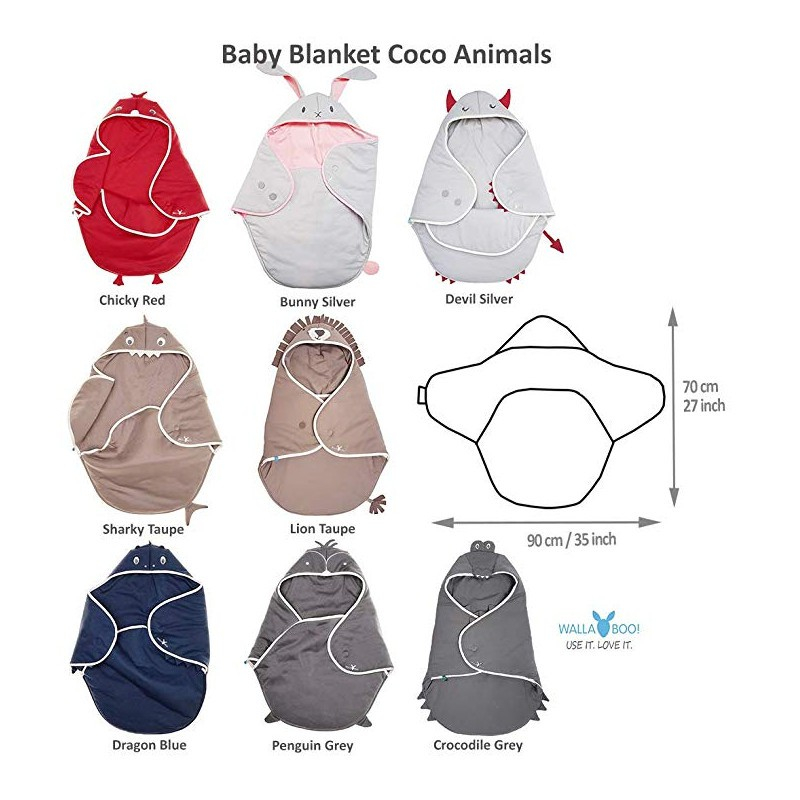 Paturica coco fun Lion taupe Wallaboo, moale cu glugaCu păturica Wallaboo, copilul este învelit rapid și cald, în orice situație. Păturica, coco da copilul tau senzatia de caldura si confort peste tot. Confortabil de 100% bumbac esențial - care dureaza spălare după spălare. De ce sa cumpar aceasta paturica: • Multi-scop poate fi folosita ca o mantie sau pătură pentru scaunul de masina • Pentru a menține capul copilului cald din zona capului, este sub forma unei glugi  • Pentru a menține picioarele mici calde, avem un  buzunar pentru picioruse • Util pentru alăptare • Fante pe spate pentru curele de siguranță( fixare ).• Usor de curatat Caracteristici & Beneficii: Material: 100% bumbac, umplere poliesterDimensiune: 90 * 70 cm Vârstă de utilizare: pentru nou-născut pana la 9 luni Testat la siguranta: pentru utilizarea produsului (CEN-TR13387) și pentru țesături Instrucțiuni de întreținere: se poate spala in mașină de spălat