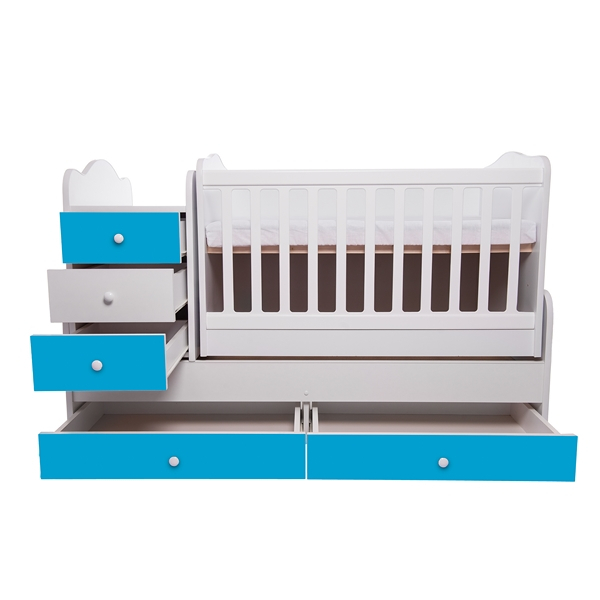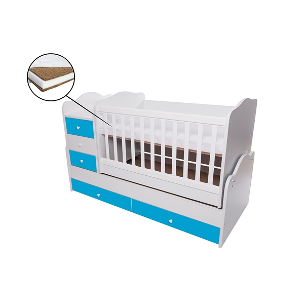 Comoda patutului poate fi folosita ca si suport pentru schimbat scutece si este detasabila.
