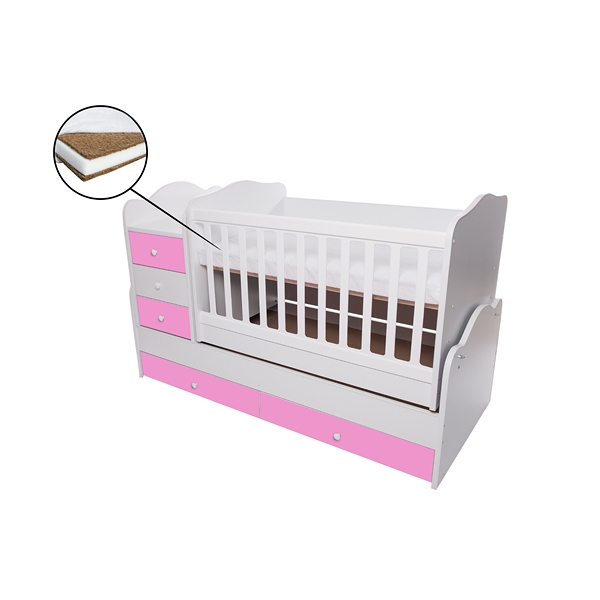 Patut transformabil VESSANTI Touring - Alb cu Roz