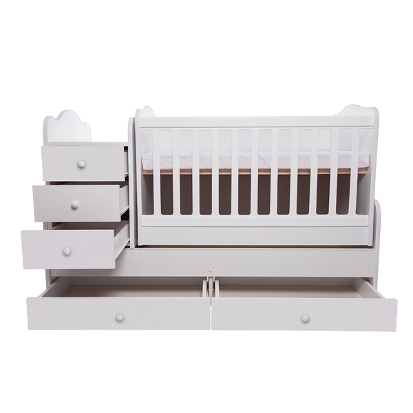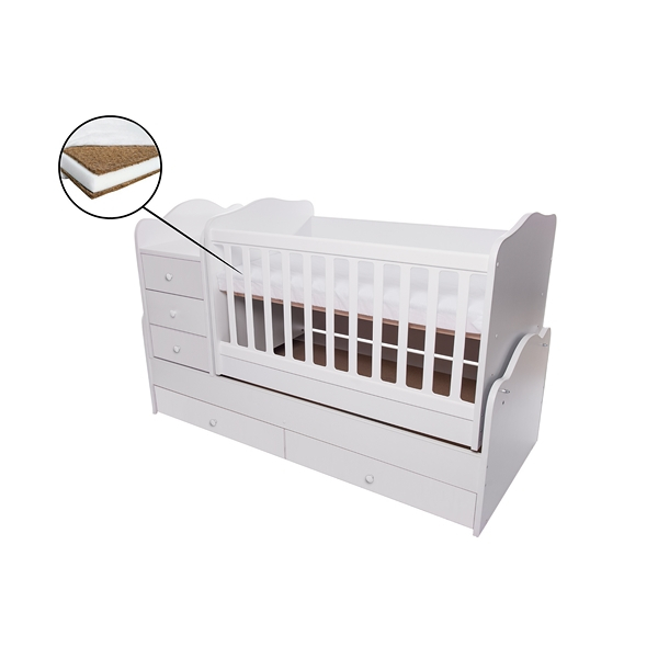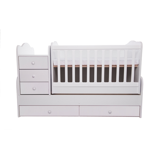 Comoda patutului poate fi folosita ca si suport pentru schimbat scutece si este detasabila.