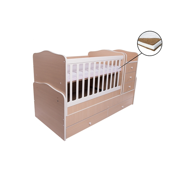 Comoda patutului poate fi folosita ca si suport pentru schimbat scutece si este detasabila.