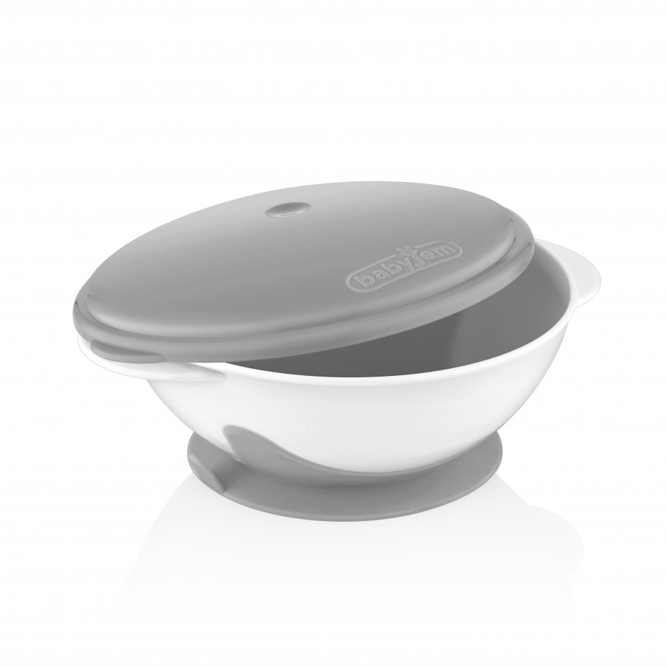Castron cu ventuza si capac BabyJem (Culoare: Gri)