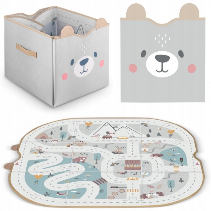 Cos de depozitare 2 in 1 cu salteluta de joaca pentru copii Nukido - Gri