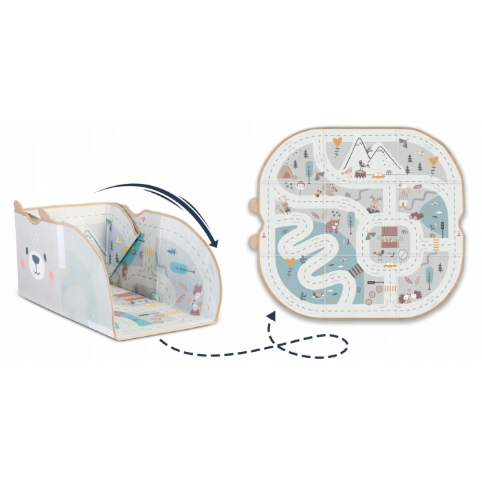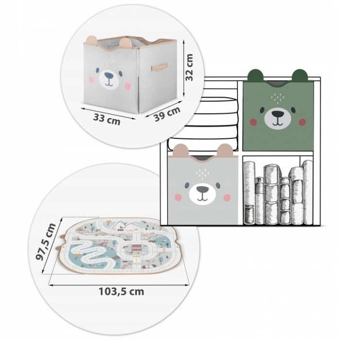 Perfect pentru camera unui copil. Cosul iti permite sa pastrezi ordinea si sa organizezi spatiul din camera copiilor. Este foarte practic si bine gandit. De asemenea, serveste si ca salteluta de joaca.